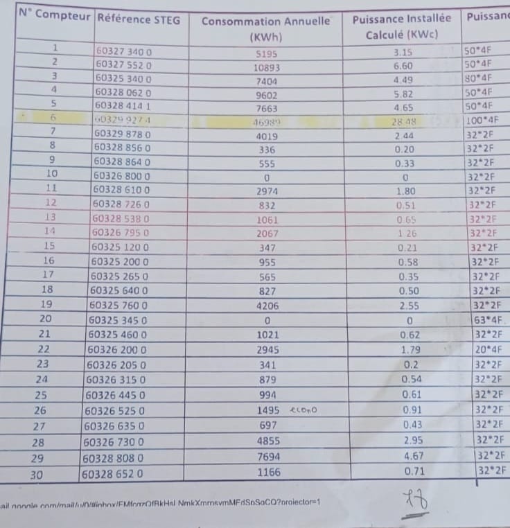 Ce dossier d'appel d'offres n'est pas seulement bâclé, avec une telle donnée de base du compteur steg le plus important en consommation éléctrique déclarée, ce dossier présente une anomalie majeure qui mérite bien une explication de la part du syndic en place.